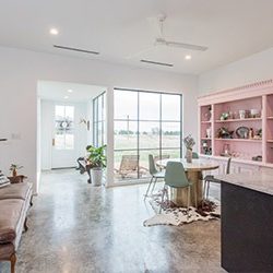 When we get asked as to why we chose to use pink on such a large piece in the home, Grant will say, “When everything is really white and minimal, you really have the opportunity to incorporate some bold choices.”